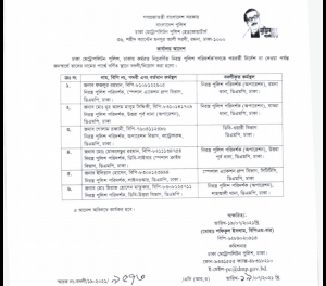 ঢাকা মেট্রোপলিটন পুলিশের (ডিএমপি) পুলিশ পরিদর্শক (নিরস্ত্র) পদমর্যাদার ছয়জন কর্মকর্তাকে বদলি করা হয়েছে।