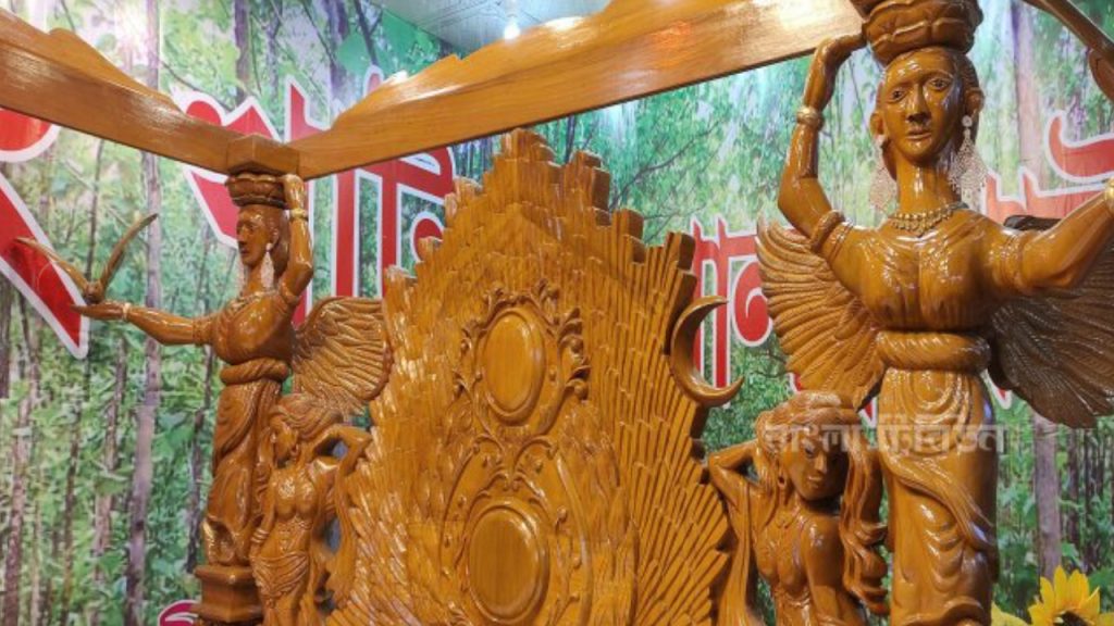 খাটে ১৬টি পরীর নকশা করা হয়েছে