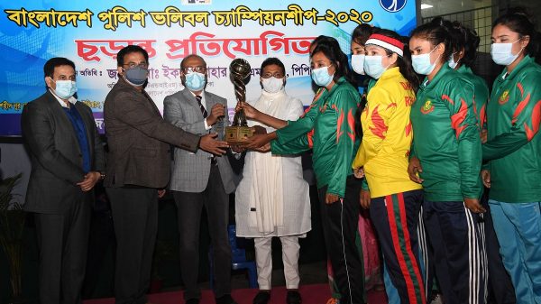 বাংলাদেশ পুলিশ ভলিবল নারী বিভাগে চ্যাম্পিয়ন হওয়ার গৌরব অর্জন করল ঢাকা মেট্রোপলিটন পুলিশ। এছাড়াও পুরুষ বিভাগে ঢাকা মেট্রোপলিটন পুলিশকে হারিয়ে চ্যাম্পিয়ন হওয়ার গৌরব অর্জন করেছে ঢাকা রেঞ্জ টিম। আজ (১১ ডিসেম্বর ২০২০) বিকালে শহীদ নূর হোসেন জাতীয় ভলিবল স্টেডিয়ামে ‘বাংলাদেশ পুলিশ ভলিবল চ্যাম্পিয়নশিপ–২০২০’ এর চূড়ান্ত প্রতিযোগিতা অনুষ্ঠিত হয়। খেলায় প্রধান অতিথি হিসেবে উপস্থিত ছিলেন মোঃ ইকবাল বাহার বিপিএম(বার), পিপিএম অতিরিক্ত আইজিপি (টিএন্ডআইএম), বাংলাদেশ পুলিশ এবং সভাপতি বাংলাদেশ পুলিশ ভলিবল ক্লাব। আজকের পুরুষ বিভাগের চূড়ান্ত খেলায় ডিএমপি টিমকে ৩–২ সেটে হারিয়ে চ্যাম্পিয়ন হয় ঢাকা রেঞ্জ। এর আগে গত ০৫ ডিসেম্বর, ২০২০ তারিখে মেয়েদের