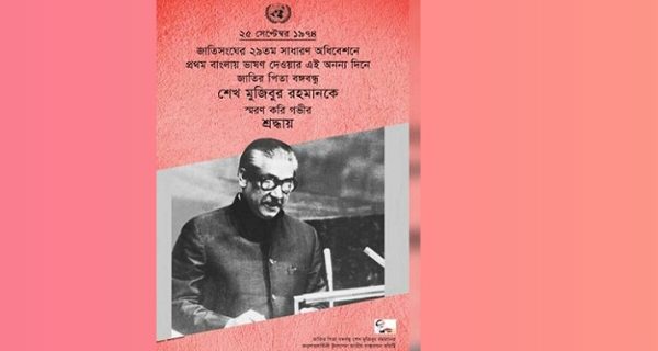 ১৯৭৪ সালের ২৫ সেপ্টেম্বর জাতিসংঘের ২৯তম সাধারণ অধিবেশনে জাতির পিতা বঙ্গবন্ধু শেখ মুজিবুর রহমানের প্রথম বাংলায় ভাষণ প্রদান স্মরণে ই-পোস্টার প্রকাশ করা হয়েছে। বঙ্গবন্ধুর জন্মশতবার্ষিকী উদযাপন জাতীয় বাস্তবায়ন কমিটির উদ্যোগে