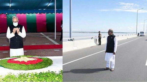 রাষ্ট্রপতি আবদুল হামিদ জাতির পিতা বঙ্গবন্ধু শেখ মুজিবুর রহমানের মাজার জিয়ারত করেছেন। শুক্রবার বিকালে পদ্মা সেতু অতিক্রম করে টুঙ্গিপাড়ায় পৌঁছেন তিনি। উদ্বোধনের পর এই প্রথম পদ্মা সেতু অতিক্রম করে রাষ্ট্রপতি