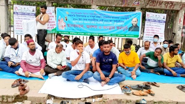 চাকরি রক্ষায় অনশন কর্মসূচি পালন করছেন মৎস্য অধিদপ্তরের ‘ইউনিয়ন পর্যায়ে মৎস্য চাষ প্রযুক্তি সেবা সম্প্রসারণ (২য় পর্যায়)’ প্রকল্পের ৫১২ জন কর্মচারী। গতকাল রোববার (২৯ মে) থেকে রাজধানীর জাতীয় প্রেস ক্লাবের