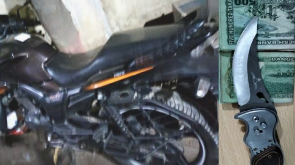রাজধানীর গেন্ডারিয়া থানা এলাকা হতে অস্ত্রসহ দুইজন ছিনতাইকারীকে গ্রেফতার করেছে ঢাকা মেট্রোপলিটন পুলিশের (ডিএমপি) গেন্ডারিয়া থানা পুলিশ। গ্রেফতারকৃতরা হলো-রাশেদুল ইসলাম রশিদ (৫০) ও তুষার (৪৫)। ৭ মে, ২০২১ (শুক্রবার) দুপুর