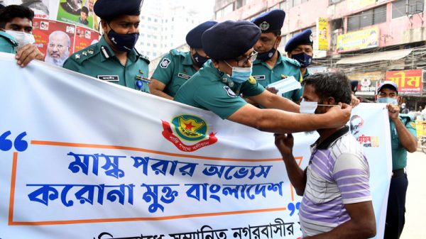মাস্ক পরার অভ্যেস, কোভিডমুক্ত বাংলাদেশ’- এই স্লোগান সামনে নিয়ে ২১ মার্চ ২০২১ থেকে দেশব্যাপী জনগণকে মাস্ক পরায় উদ্বুদ্ধকরণ কর্মসূচি শুরু করছে বাংলাদেশ পুলিশ। চলমান কর্মসূচির লক্ষ্য হলো জনগণের মধ্যে মাস্ক