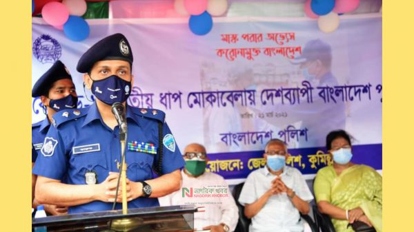 কুমিল্লা জেলা পুলিশের উদ্যোগে মাস্কমঞ্চ স্থাপন ও মাস্ক বিতরণের একটি র্যালির মাধ্যমে সচেতনাতা মুলক কর্মসুচি পালন করা হয়েছে। গতকাল রোববার জেলা পুলিশ সুপার ফারুক আহমেদের নেতৃত্বে একটি র্যালি ও মাস্ক
