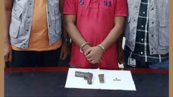 রাজধানীর খিলগাঁও থেকে পিস্তল ও গুলিসহ একজনকে গ্রেফতার করেছে ঢাকা মেট্রোপলিটন পুলিশ (ডিএমপি) এর গোয়েন্দা-রমনা বিভাগ। গ্রেফতারকৃতের নাম মোঃ ওমর ফারুক। এসময় তার হেফাজত থেকে ৩ রাউন্ড গুলি ভর্তি ম্যাগজিনসহ