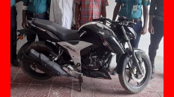রাজধানীর শাহজাহানপুর থেকে চুরি হওয়া মোটরসাইকেল উদ্ধার ও দুই পেশাদার চোরকে গ্রেফতার করেছে ঢাকা মেট্রোপলিটন পুলিশের (ডিএমপি) শাহজাহানপুর থানা পুলিশ। গ্রেফতারকৃতরা হলো মহিউদ্দিন হাসান রনি ও মোঃ শরীফ মোল্লা। শাহজাহানপুর