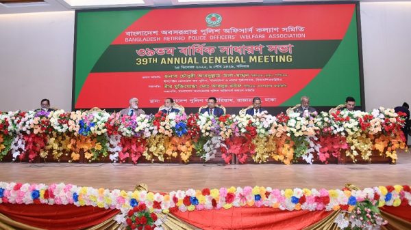 বাংলাদেশ অবসরপ্রাপ্ত পুলিশ অফিসার্স কল্যাণ সমিতির (বিআরপিওডব্লিউএ) ৩৯তম বার্ষিক সাধারণ সভা (এজিএম) আজ শনিবার (২৪ ডিসেম্বর ২০২২) সকালে রাজারবাগে বাংলাদেশ পুলিশ অডিটোরিয়ামে অনুষ্ঠিত হয়েছে। ইন্সপেক্টর জেনারেল অব পুলিশ (আইজিপি) ও