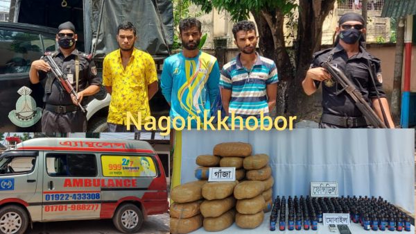 র্যাব-১১ এর সিপিসি-২ এর একচি দল কুমিল্লা বুড়িচং থানার শংকচাইল এলাকা থেকে রোগী পরিবহনের আড়ালে এ্যাম্বুলেন্সের ভিতর লুকিয়ে মাদক পরিবহনের সময় ৫০ কেজি গাঁজা ও ১৫০ বোতাল ফেন্সিডিলসহ তিনজন মাদক