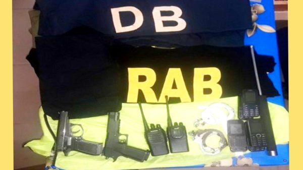 রাজধানীর যাত্রাবাড়ী এলাকায় ভুয়া ডিবি ও র্যাব পরিচয়ে ডাকাতির প্রস্তুতিকালে চক্রের ছয় সদস্যকে গ্রেফতার করেছে ঢাকা মেট্রোপলিটন পুলিশের (ডিএমপি) যাত্রাবাড়ী থানা পুলিশ। গ্রেফকৃতরা ডিবি ও র্যাবের ভুয়া জ্যাকেট পরে খেলনা