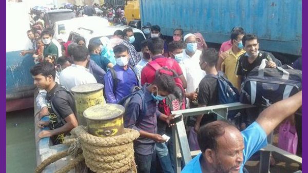 পাটুরিয়া-দৌলতদিয়া নৌরুটে শেষ মুহূর্তে ঈদে ঘরে ফেরা মানুষের ঢল নেমেছে। এ নৌরুটে সব ফেরি চলাচল করায় যাত্রীদের স্বস্তি ফিরেছে। বৃহস্পতিবার (১৩ মে) ঘাট এলাকা এমন দৃশ্য দেখা গেছে। সরেজমিনে দেখা