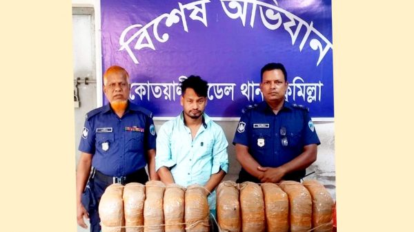 কুমিল্লা আদর্শ সদর উপজেলার কোটেশ্বর এলাকা থেকে ২০ কেজি গাঁজাসহ বিল্লাল মিয়াকে গ্রেফতার জরে পুলিশ। পুলিশ জানায়, গোপন সংবাদের ভিত্তিতে শুক্রবার ১২ মে কুমিল্লা কোতয়ালী মডেল থানাধীন ছত্রখিল ফাঁড়িতে কর্মরত