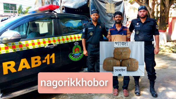 কুমিল্লায় র্যাব-১১, সিপিসি-২ এর বিশেষ অভিযানে চৌদ্দগ্রাম থানাধীন মিয়া বাজার এলাকা থেকে ৯ কেজি গাঁজাসহ ১ জন মাদক কারবারিকে গ্রেফতার করা হয়। র্যাব জানায়, গোপন সংবাদের ভিত্তিতে র্যাব-১১, সিপিসি-২ এর