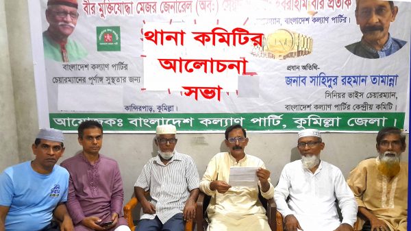 ৯ সেপ্টেম্বর শুক্রবার বিকাল ৪ ঘটিকার সময় বাংলাদেশ কল্যাণ পার্টির কুমিল-া জেলার অস্থায়ী কার্যালয়ে জেলা স্কুল রোড, কান্দিরপাড়, কুমিল্লায় মতবিনিময় সভা অনুষ্ঠিত হয়। উক্ত সভায় সভাপতিত্বে করেন ব্রাহ্মণপাড়ার থানার সভাপতি