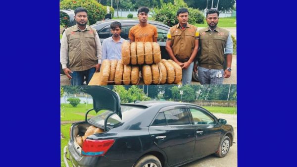 কুমিল্লা জেলা ডিবি পুলিশের একটি টিম বিশেষ অভিযান চালিয়ে মহানগরীর কাপ্তানবাজার এলাকা থেকে একটি কালো রংয়ের টয়োটা ব্রান্ডের এলিয়ন প্রাইভেটকার তল্লাশী চালিয়ে ৩০ কেজি গাঁজা উদ্ধার ও দু্ইজনকে গ্রেফতার করে।