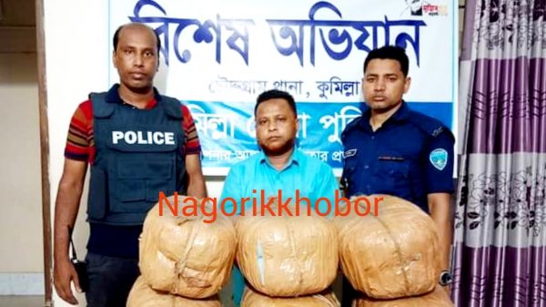 কুমিল্লা চৌদ্দগ্রাম থানা পুলিশ বিশেষ অভিযান চালিয়ে থানা এলাকার কালিকাপুর ইউপির দুর্গাপুর থেকে ২৪ কেজি গাঁজাসহ মাদক ব্যবসায়ি জসিমকে গে্রফতান করে। জেলা পুলিশ সুত্র জানায়,কুমিল্লা জেলাকে মাদক মুক্ত করার জন্য