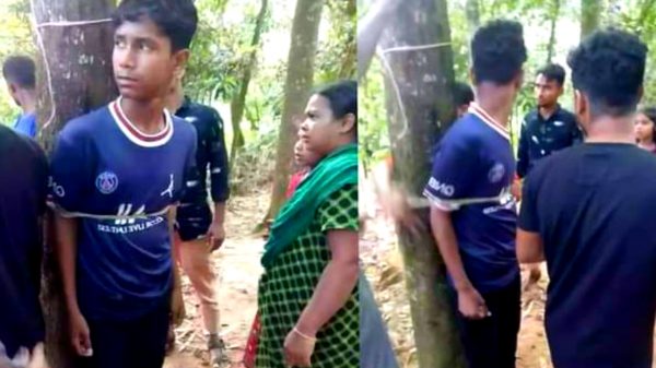 কুমিল্লার বুড়িচংয়ের সীমান্তবর্তী ভৈরবপুর (পাহাড়পুর) এলাকায় পিতার কাছে পাওনা টাকাকে কেন্দ্র করে স্কুল পড়ুয়া শিক্ষার্থীকে গাছে বেঁধে নির্যাতনের অভিযোগ উঠেছে। এর আগে তাকে সহপাঠীদের সামনে থেকে অস্ত্র ঠেকিয়ে তুলে নেয়