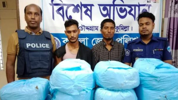 কুমিল্লা চৌদ্দগ্রাম থানা পুলিশের একটি টিম কালিকার এলাকা থেকে ৩৪ কেজি গাঁজাসহ দুইজন মাদক ব্যবসায়িকে গ্রেফতার করেছে। চৌদ্দগ্রাম থানা পুলিশ সুত্র জানায়, কুমিল্লা জেলাকে মাদক মুক্ত করার জন্য পুলিশ সুপার,