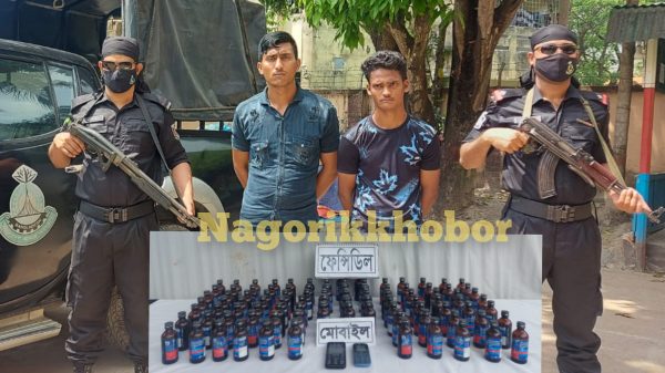 কুমিল্লায় র্যাব-১১ এর সিপিসি-২ এর বিশেষ অভিযানে বুড়িচং থানার নিমসার বাজার এলাকা থেকে ৯৪ বোতল ফেন্সিডিলসহ দুইজন মাদক ব্যবসায়ীকে গ্রেফতার করে। র্যাব জানায়,গোপন সংবাদের ভিত্তিতে র্যাব-১১, সিপিসি-২ এর একটি আভিযানিক
