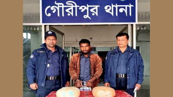 ময়মনসিংহের গৌরীপুর থানা পুলিশ বিশেষ অভিযান চালিয়ে বকুল মিয়া (৪০) নামে স্থানীয় এক মাদক ব্যবসায়ীকে ৪ কেজি ১শ গ্রাম গাঁজাসহ হাতনাতে গ্রেপ্তার করেছে। শনিবার (২৮ জানুয়ারি) রাত ১০ টার দিকে