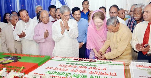 গুলশানের রাজনৈতিক কার্যালয়ে ৫৩ পাউন্ডের ৭টি কেক কেটে ছেলের জন্মদিন উদযাপন করেছেন বিএনপি চেয়ারপারসন বেগম খালেদা জিয়া। রোববার (১৯ নভেম্বর) দিনগত রাত ১২টা ১ মিনিটে এ কেক কাটা হয়। এ